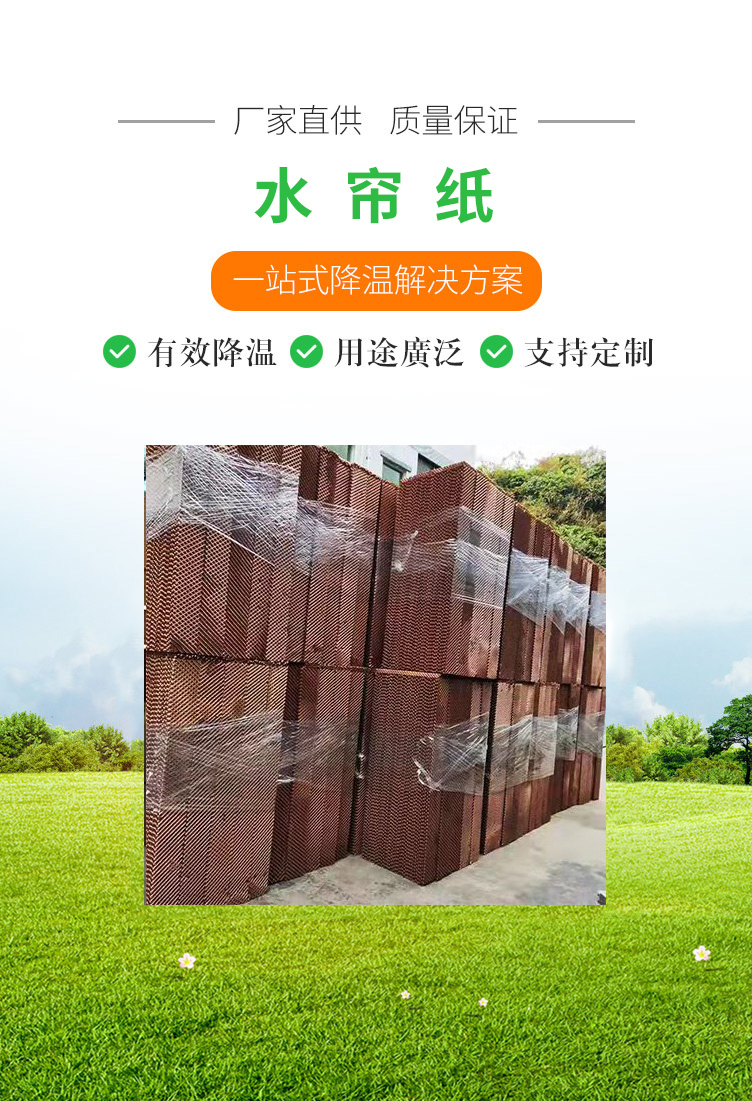 公司致力于發展提高節能環保領域及通風降溫系統工程,適用各類工廠車間,關殖場,網吧降溫需求。我司水簾片,濕簾墻質地堅硬,抗壓力高,吸水性好,不易變形,不縮水。