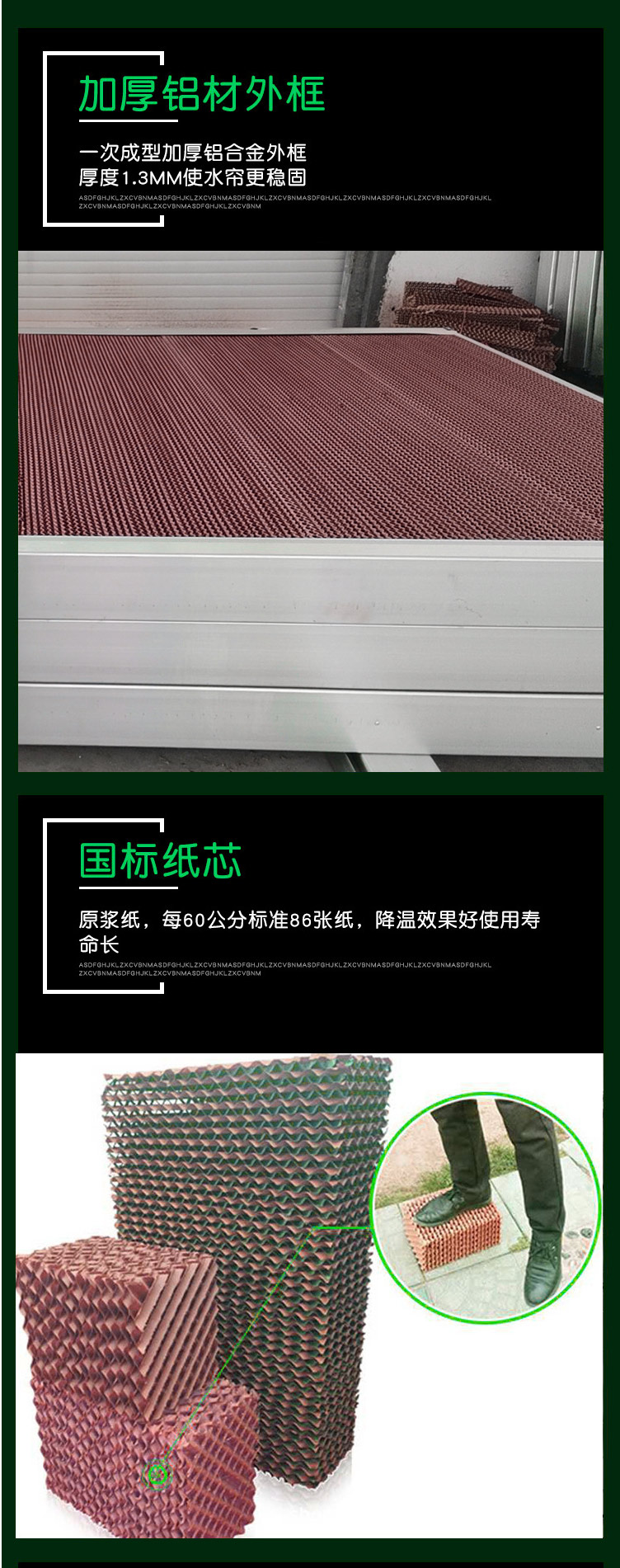 公司致力于發(fā)展提高節(jié)能環(huán)保領(lǐng)域及通風(fēng)降溫系統(tǒng)工程,適用各類工廠車間,關(guān)殖場,網(wǎng)吧降溫需求。我司水簾片,濕簾墻質(zhì)地堅(jiān)硬,抗壓力高,吸水性好,不易變形,不縮水。