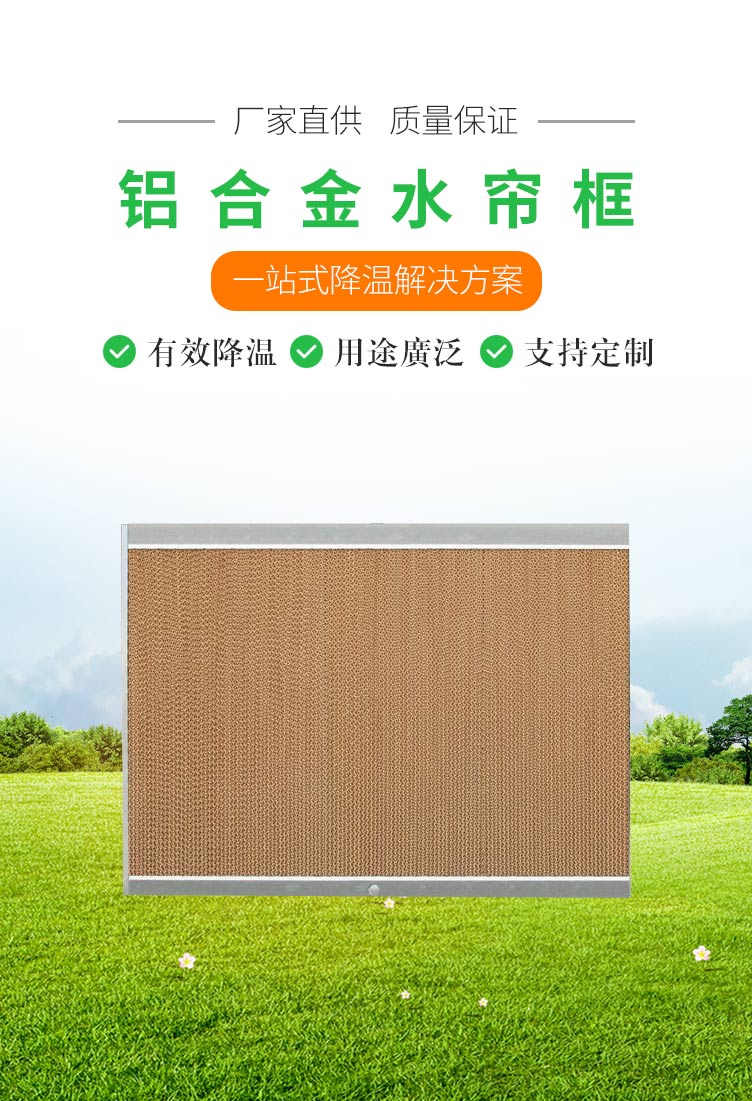 公司致力于發展提高節能環保領域及通風降溫系統工程,適用各類工廠車間,關殖場,網吧降溫需求。我司水簾片,濕簾墻質地堅硬,抗壓力高,吸水性好,不易變形,不縮水。
